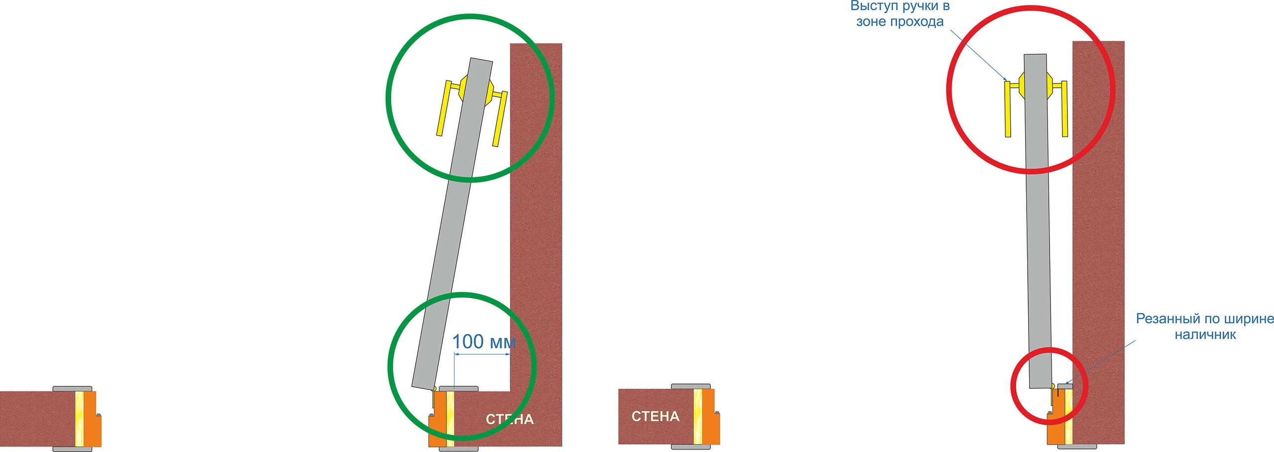 Открывание двери должно составлять минимум 95 градусов - как минимум для безопасного и комфортного прохода.