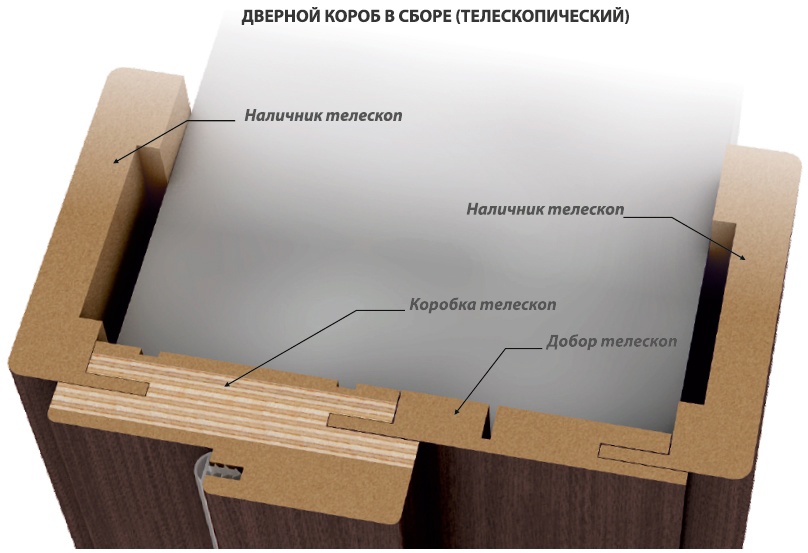 95% современных дверных комплектов идёт именно с телескопическим погонажем, мы предлагаем же только такой вариант и больше никакой. Итак, что это?